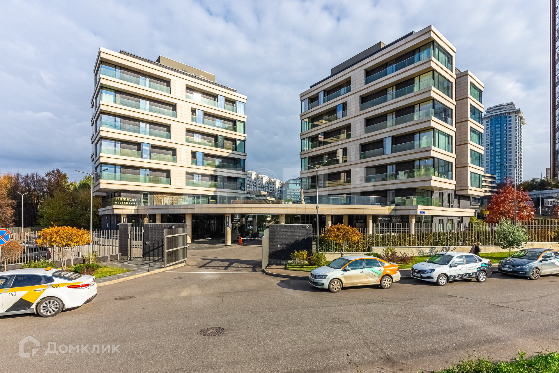 Из дома можно напрямую спуститься в благоустроенный парк на берегу озера. Въезд в жилой комплекс осуществляется с улиц Минская и Мосфильмовская.