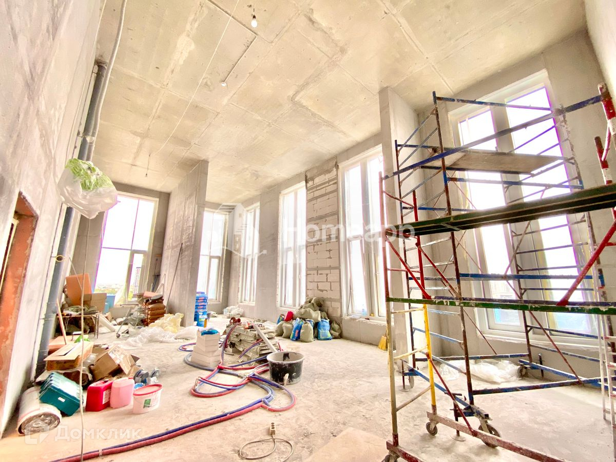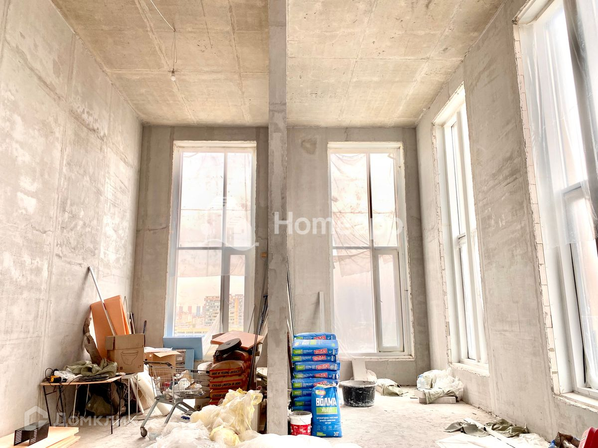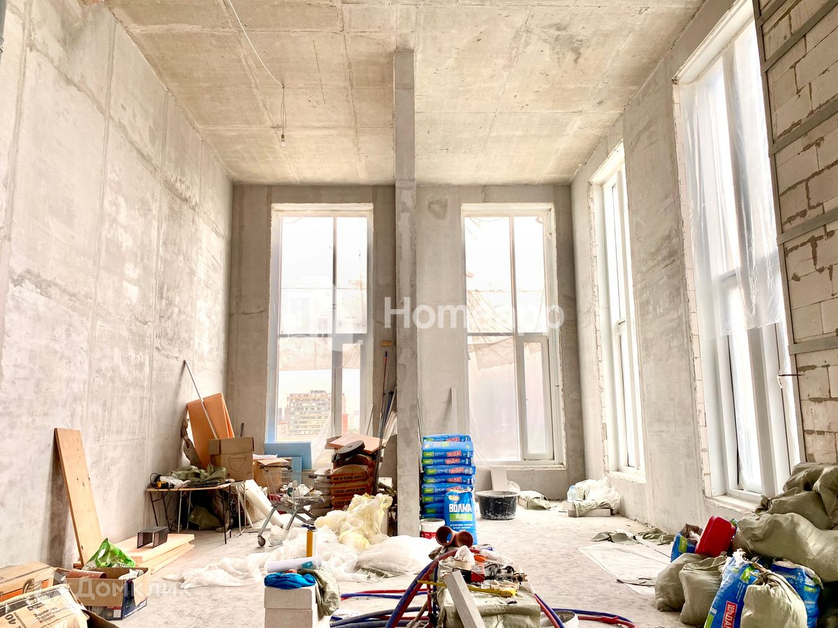 Высота потолков 5.7 метра, что позволяет сделать два полноценных этажа: площадь 1 этажа - 85 м², 2 - 63 м². Два стояка, возможна любая планировка, насколько хватит фантазии. Квартира солнечная, угловая, окна выходят на две стороны. Панорамное остекление.
