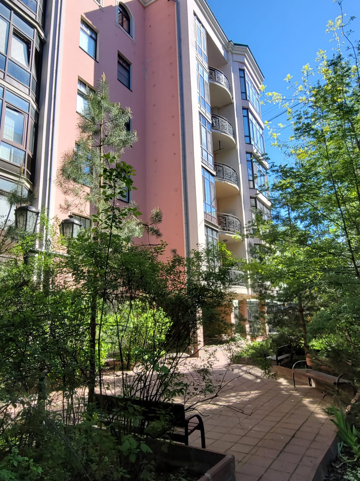 Закрытая территория с деревьями и детской площадкой, входная группа и подъезд отделаны мрамором, охрана на ресепшене, удобный подземный паркинг.