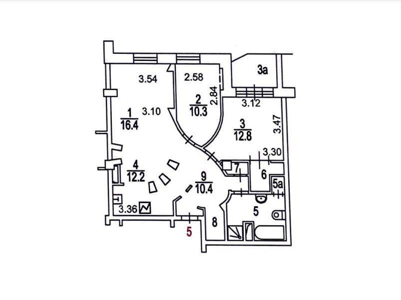 Общая площадь с утепленной лоджией/кабинетом 78.5 кв. м. Помещения включают в себя спальню, примыкающую к спальне гардеробную (марка Arca) и лоджию, детскую, кухню объединенную с гостиной, ванную комнату, прихожую с встроенным шкафом и небольшую отдельную кладовку. Есть сейф.