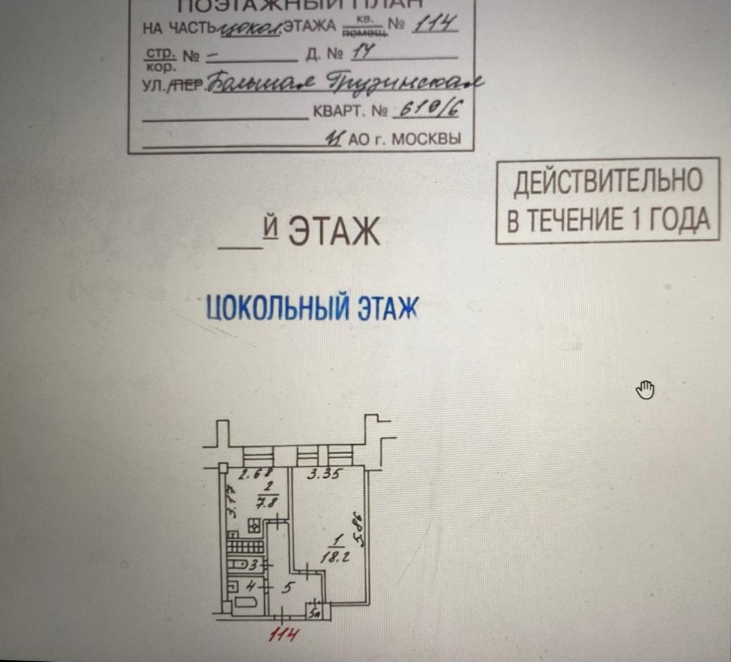 1-комнатная квартира, 35.7 м2, этаж 1 / 14, на продажу в Москве, Большая Грузинская улица, 14