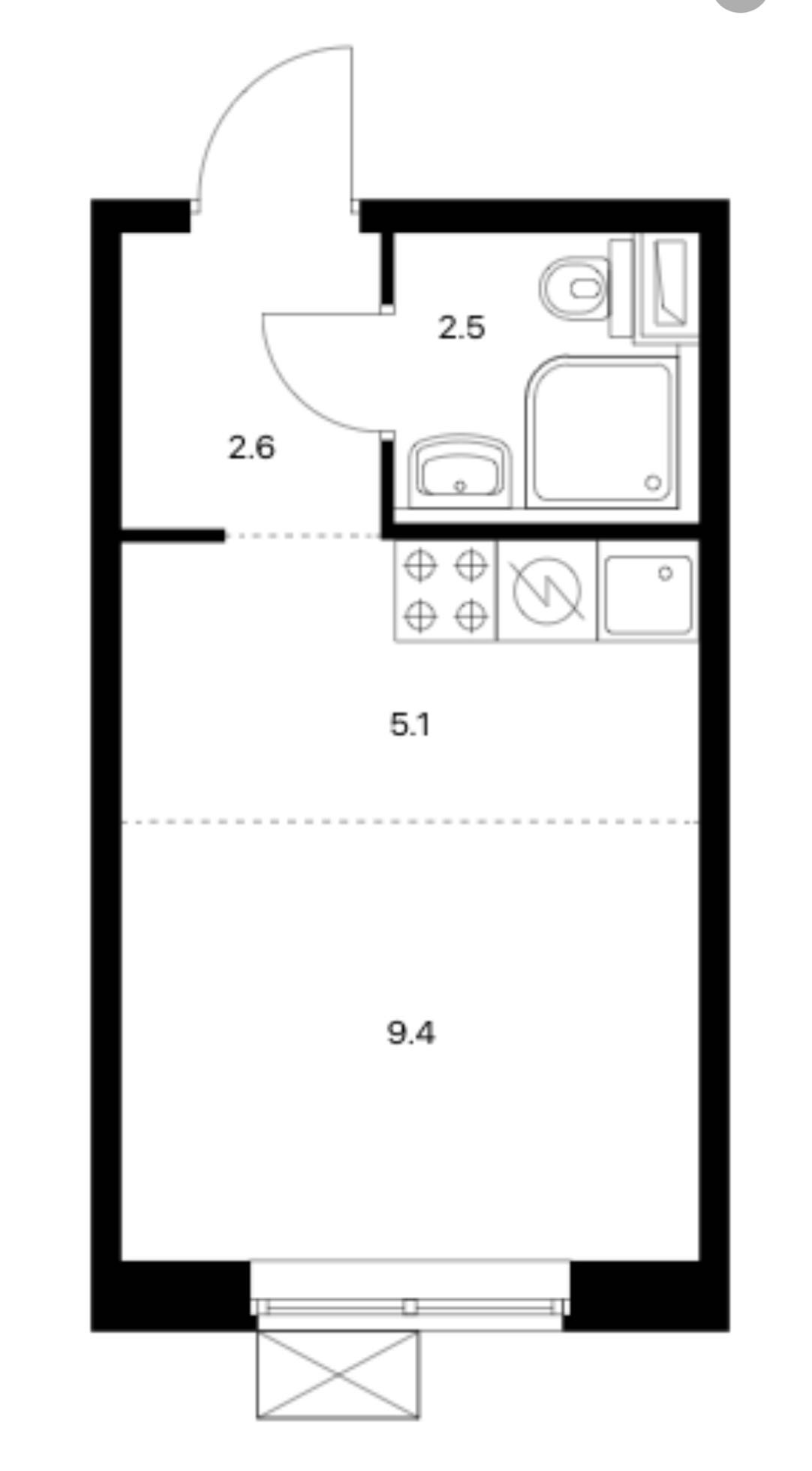 Жилая площадь 9.4 м2