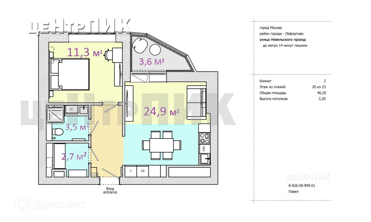 Общая площадь 46.2 м2