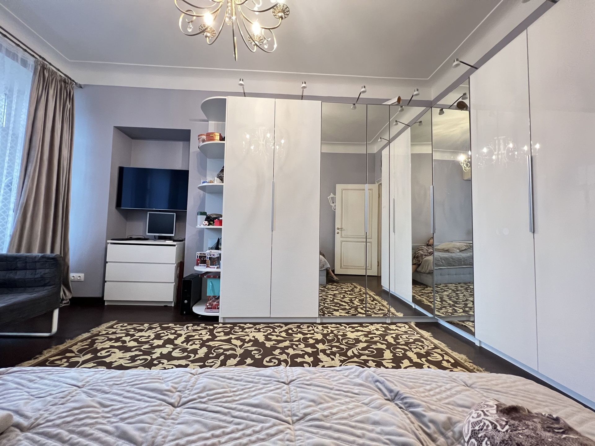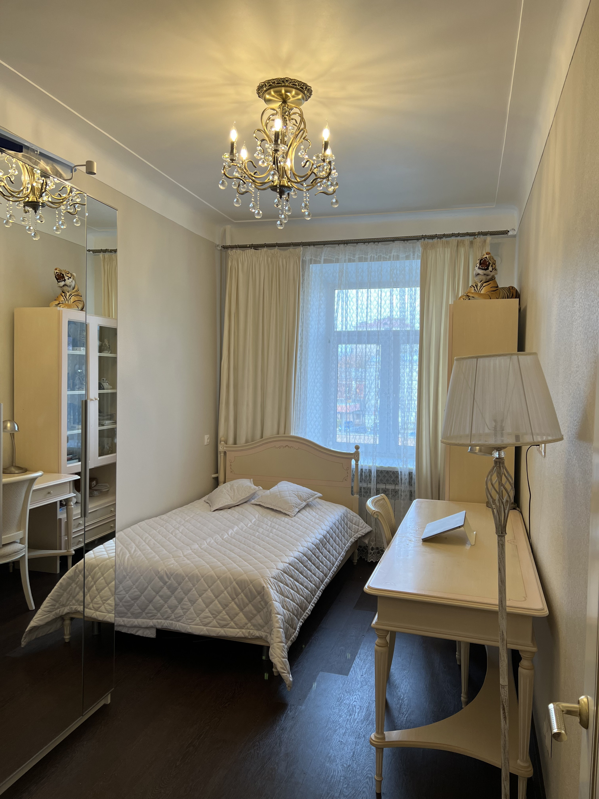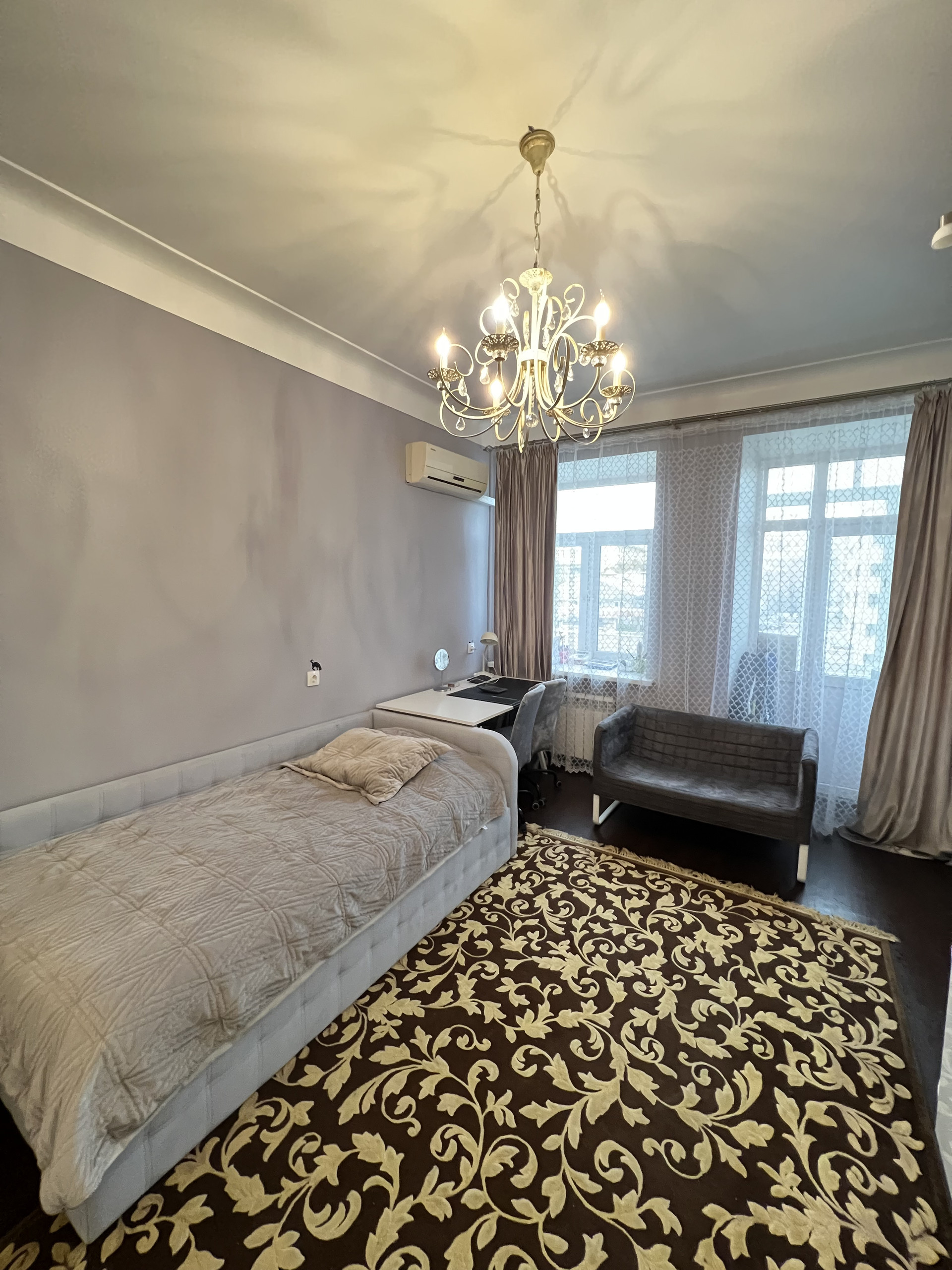 Квартира продается со встроенной мебелью и техникой Bosh (посудомойка, 2 холодильника, стиральная машинка, духовка, варочная панель, вытяжка), водонагреватель, кондиционеры. В квартире 2 камина, дизайнерский ремонт, классический стиль.