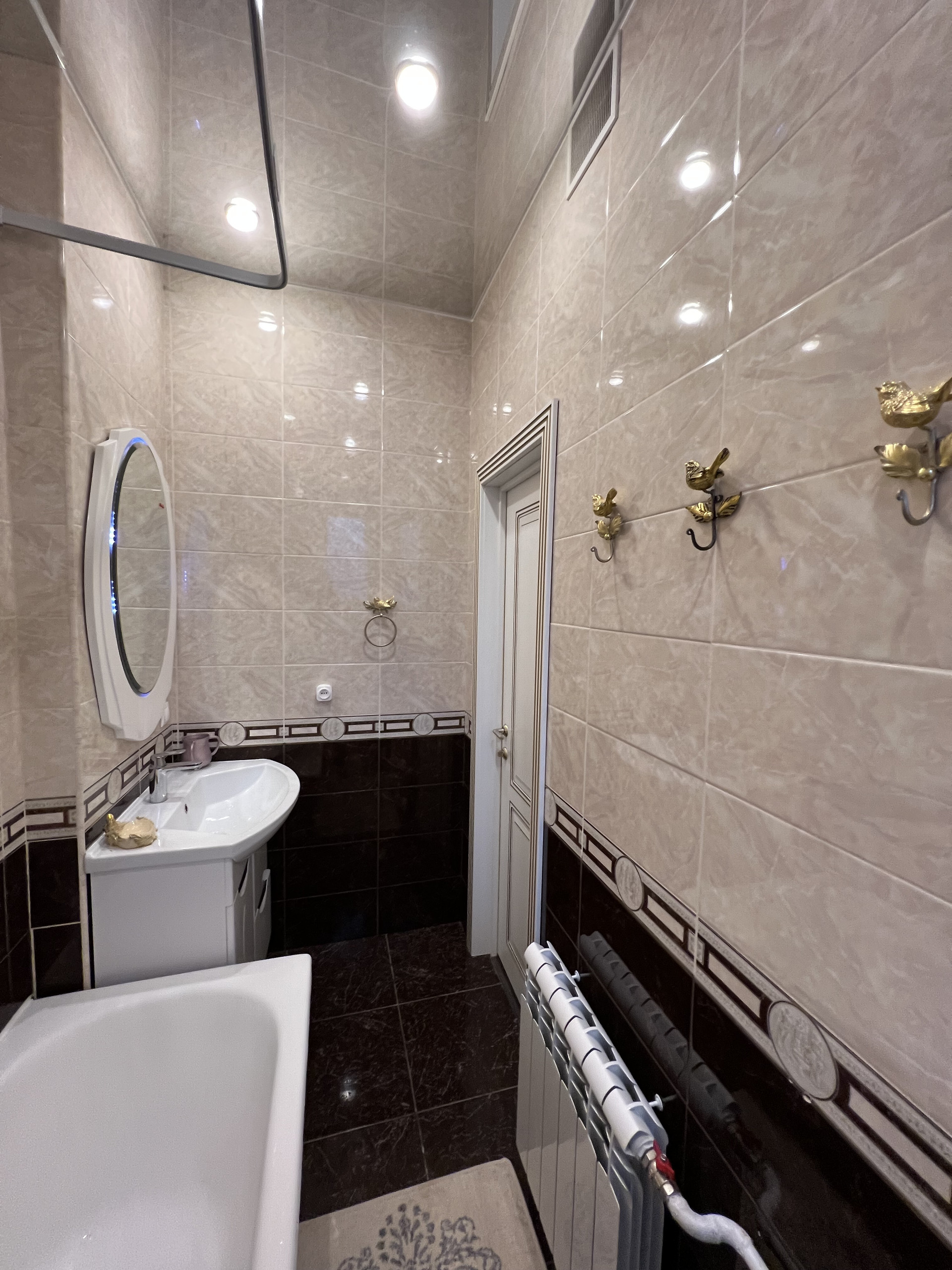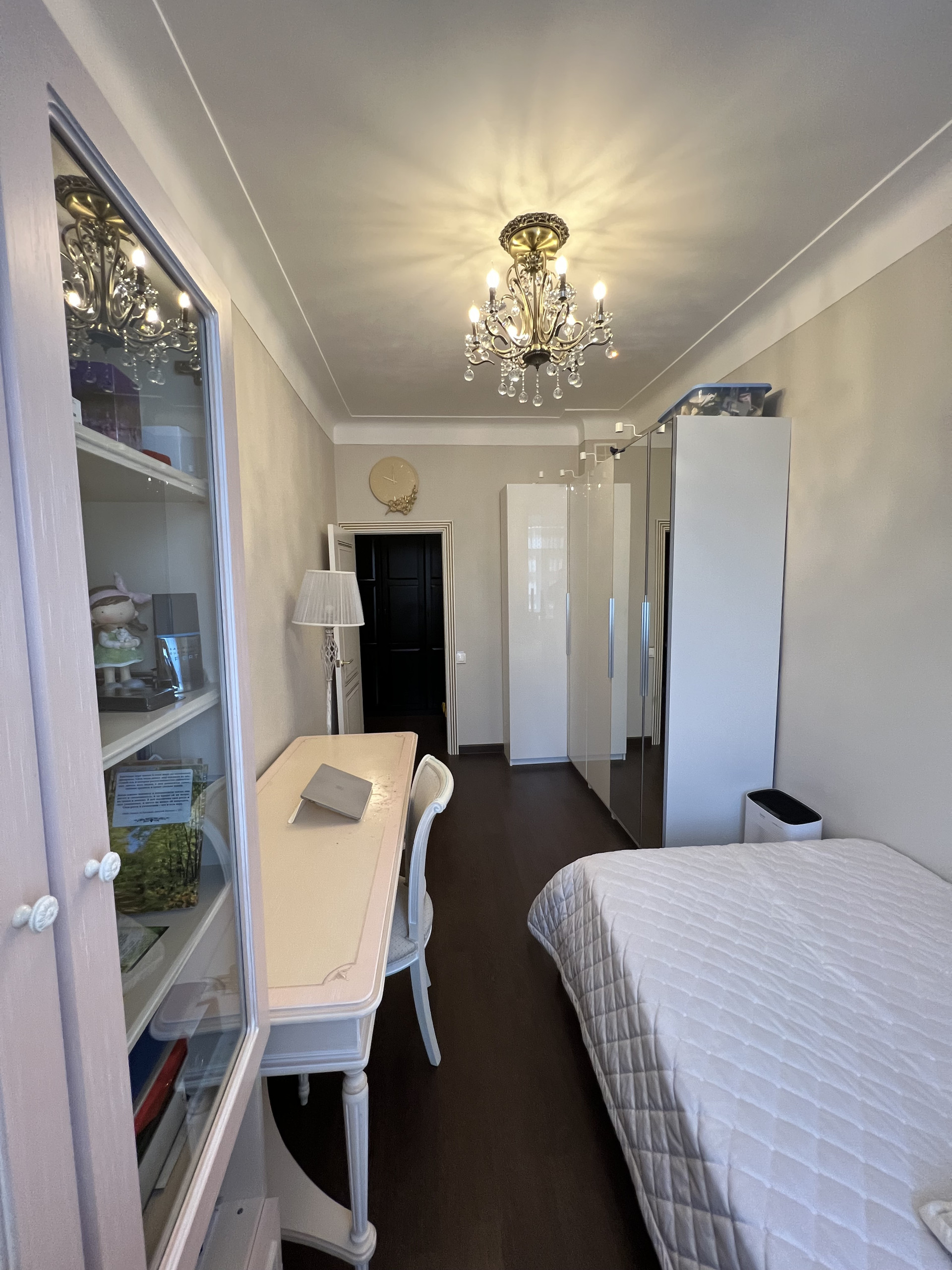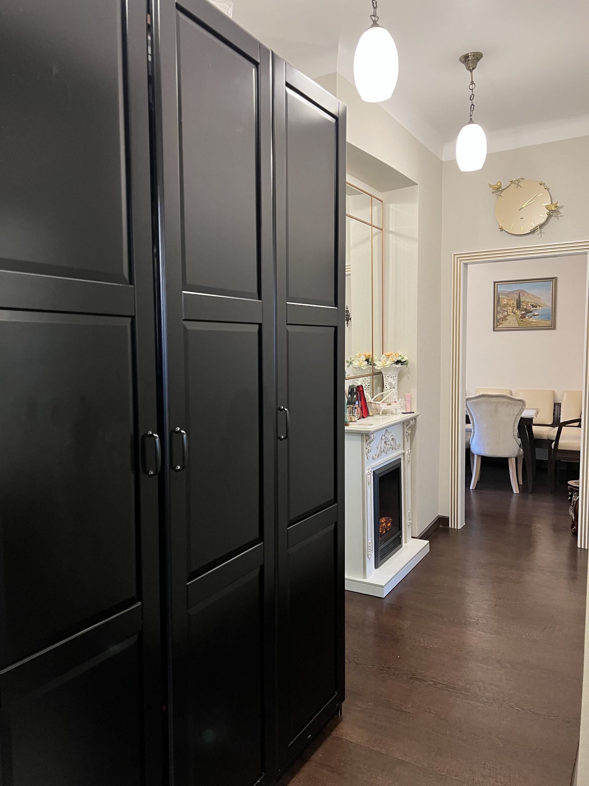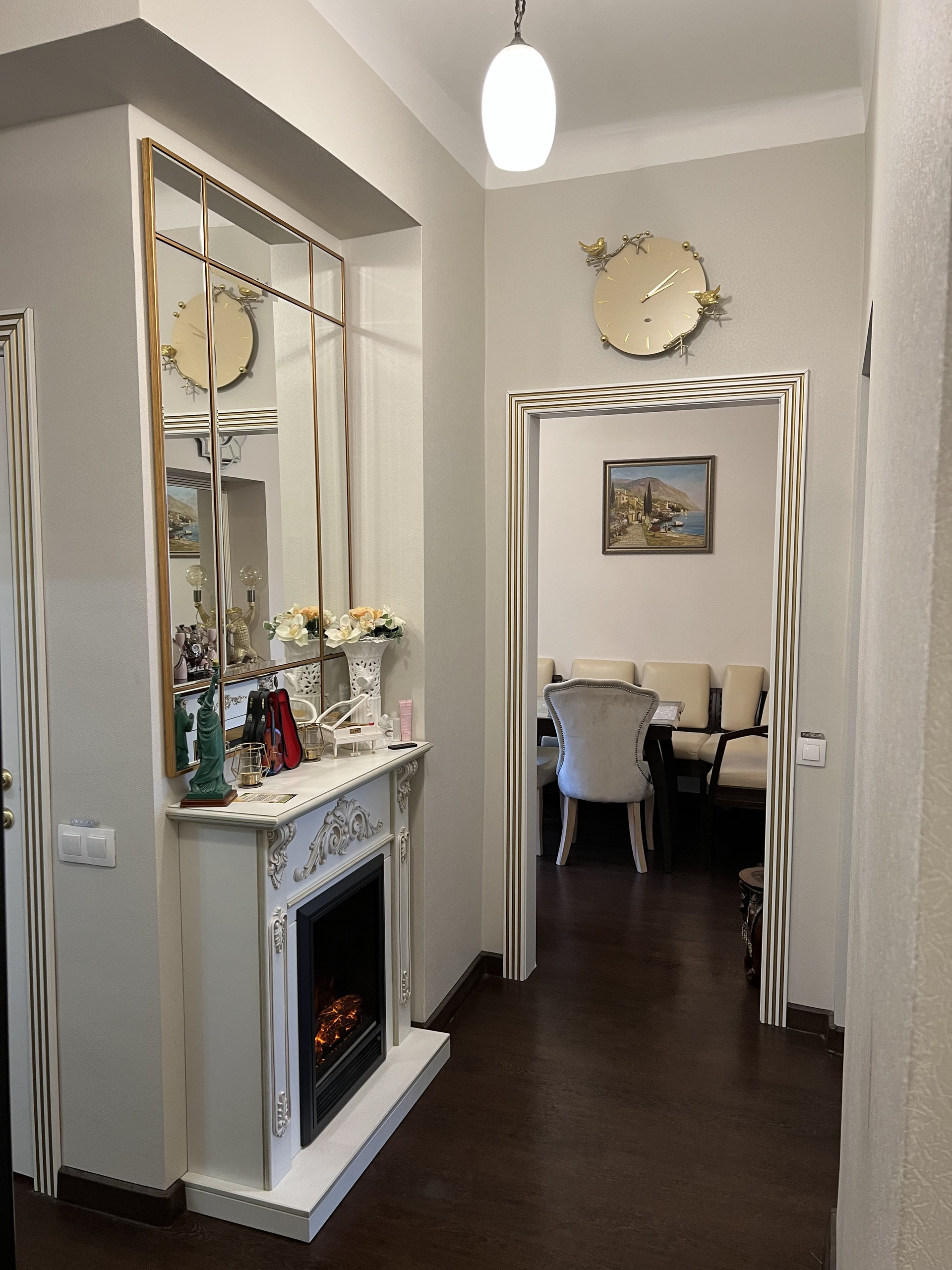Квартира продается со встроенной мебелью и техникой Bosh (посудомойка, 2 холодильника, стиральная машинка, духовка, варочная панель, вытяжка), водонагреватель, кондиционеры. В квартире 2 камина, дизайнерский ремонт, классический стиль.