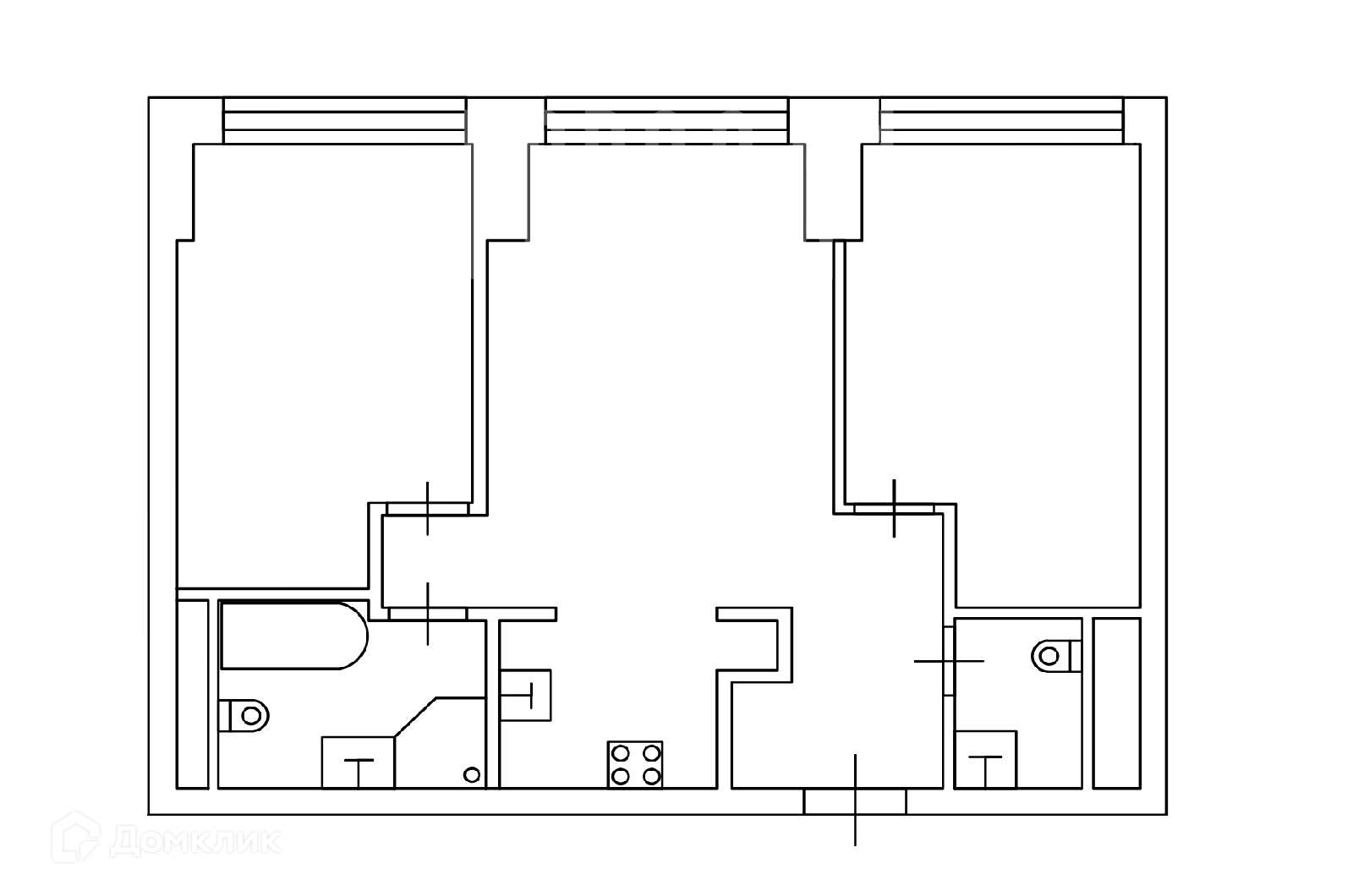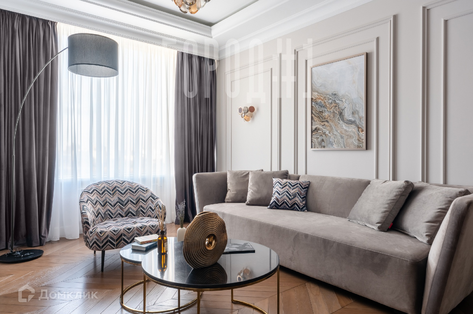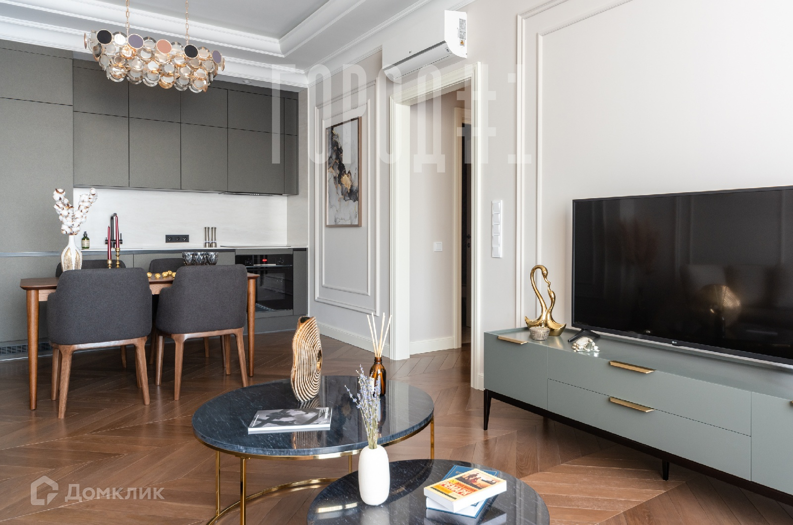 Планировка: Кухня-столовая-гостиная, 2 спальные комнаты, гардеробная, 2 с/у.