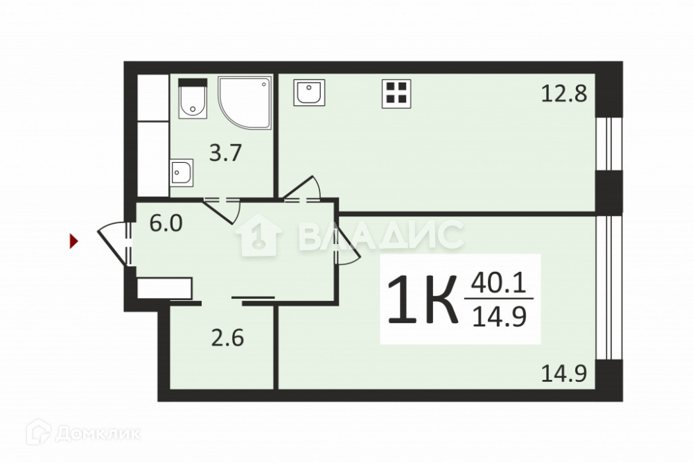 Общая площадь 40.1 м2
