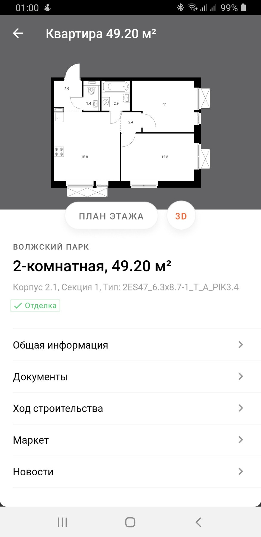 Общая площадь 49.2 м2