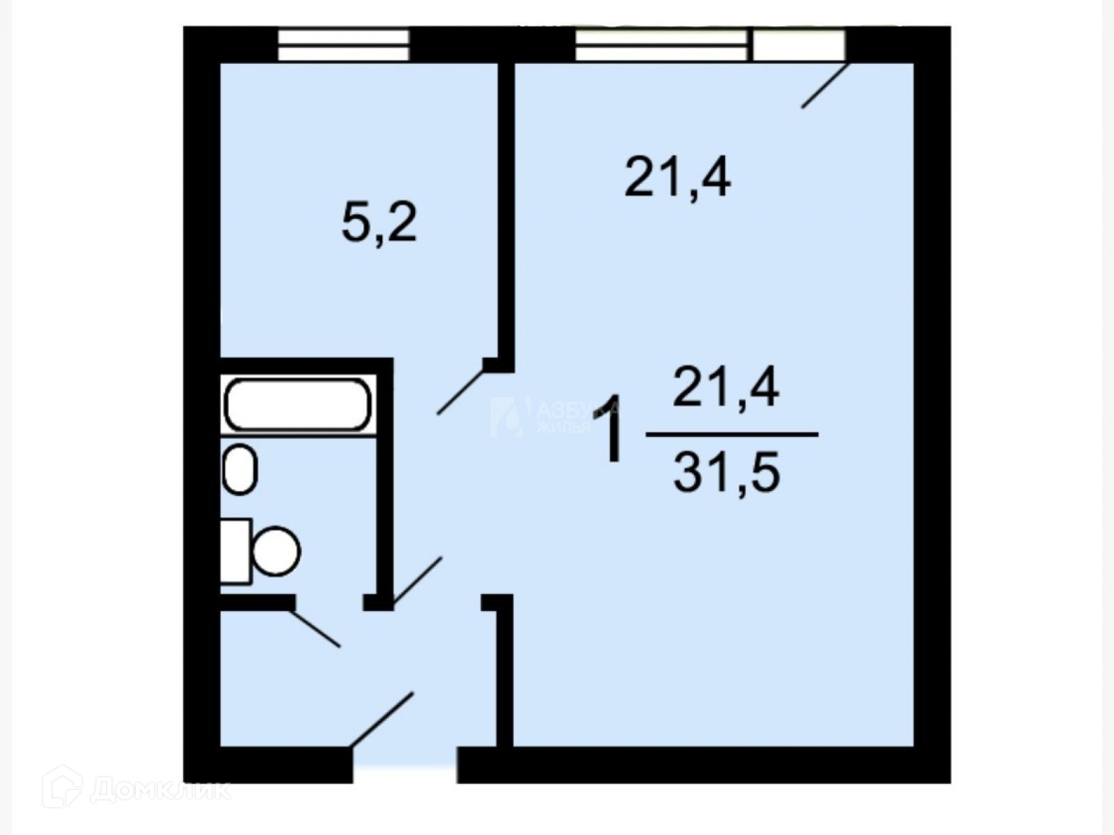 Общая площадь 31.6 м2