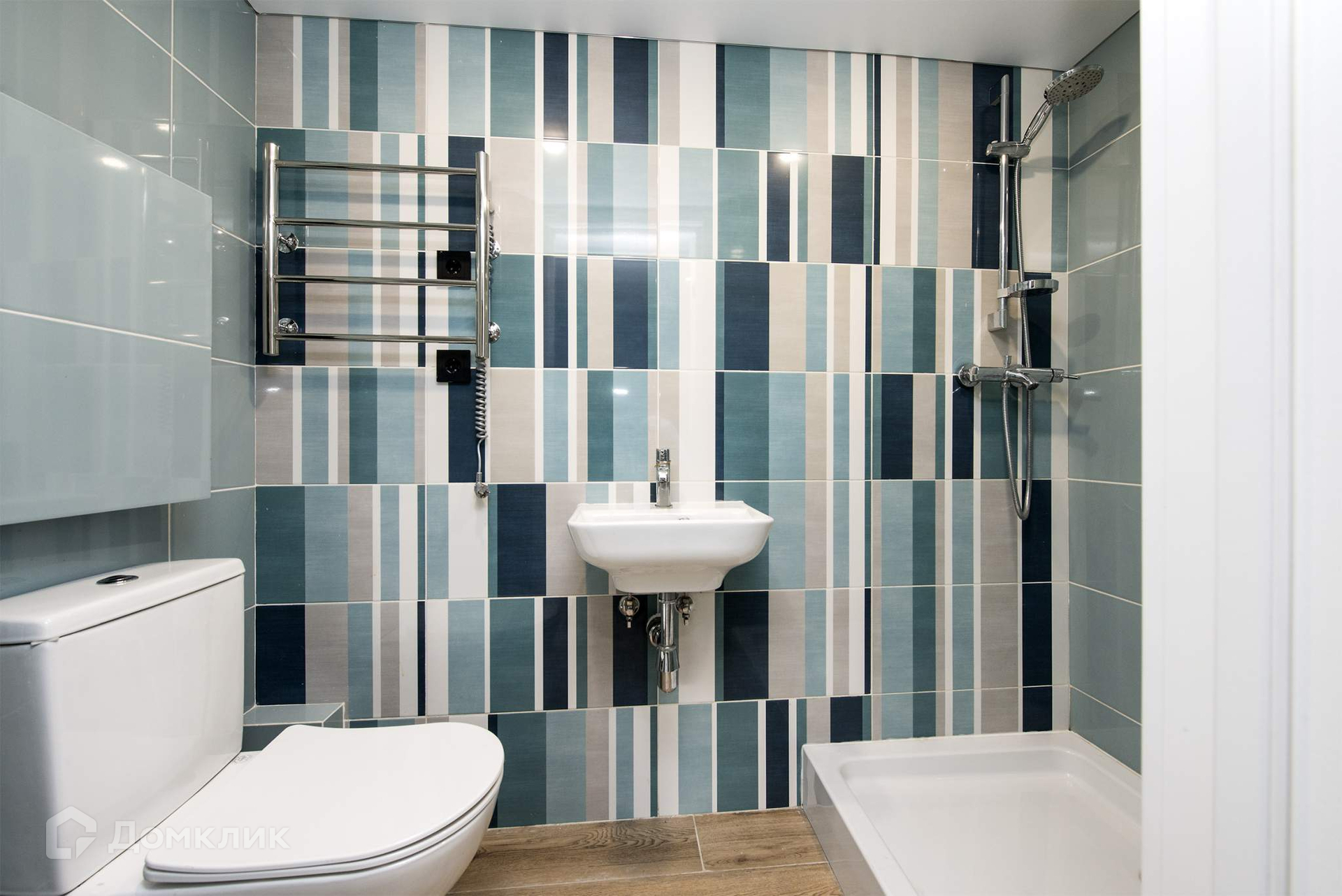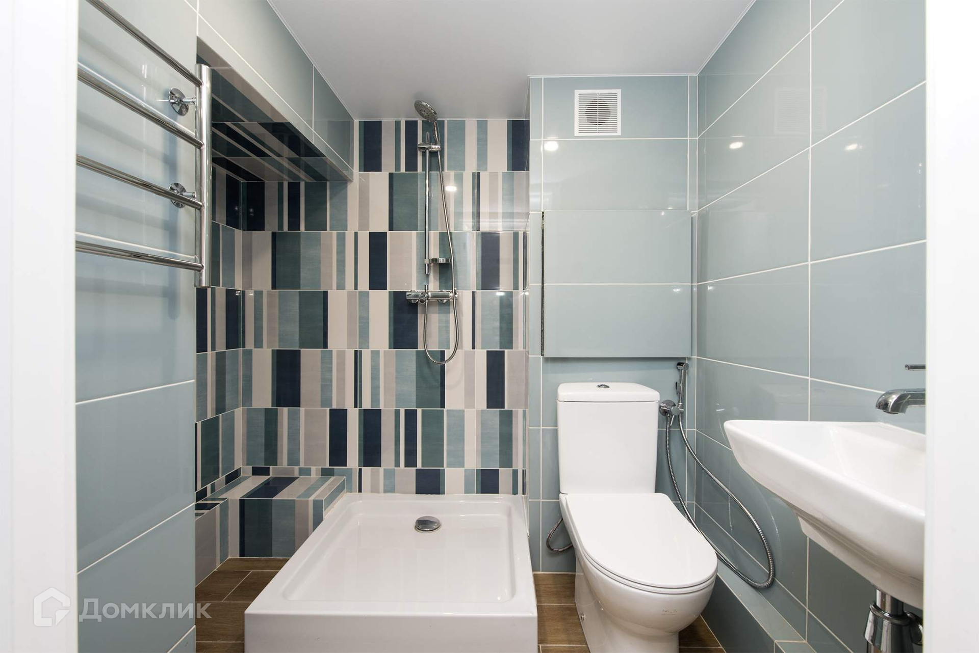 В с/у выполнена дизайнерская отделка, установлена современная сантехника: душевая, унитаз, полотенцесушитель, новые трубы.