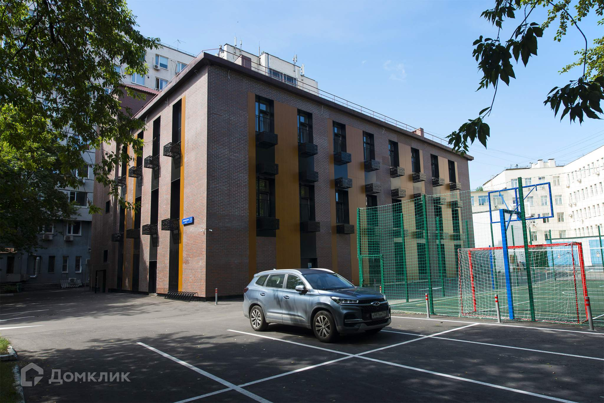 Комплекс Ольминского представляет собой четырехэтажное современное здание, расположенное на огороженной территории.