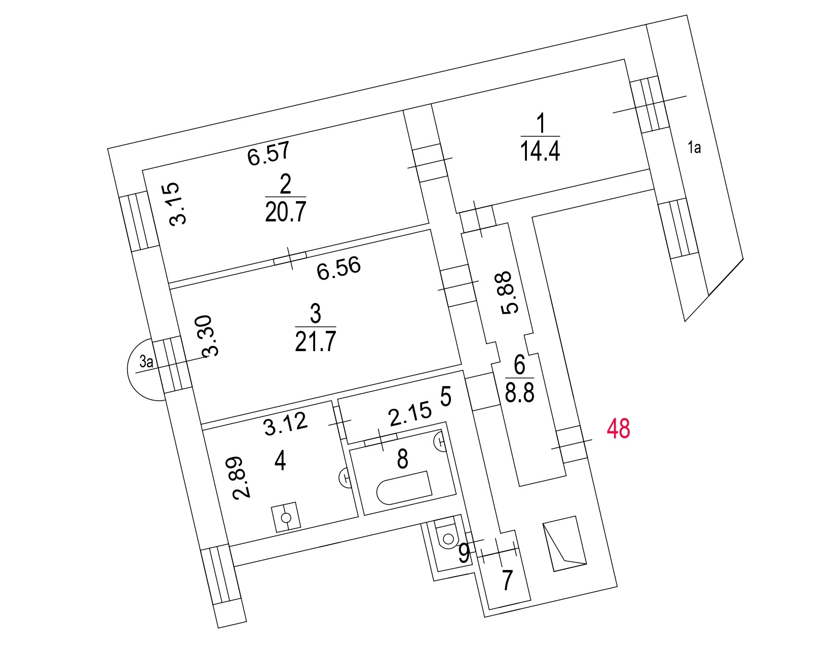 Общая площадь 85.7 м2