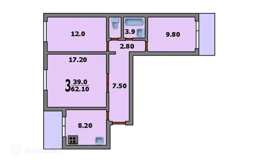 3-комнатная квартира, 62 м2, этаж 6 / 12, на продажу в Москве, Инициативная улица, 7к2