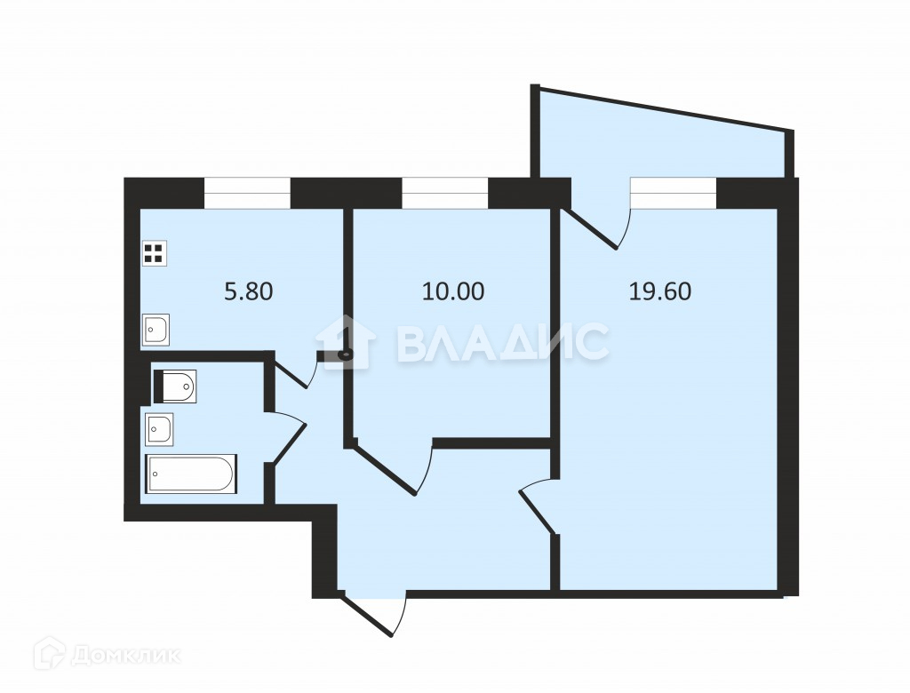 Жилая площадь 29.6 м2