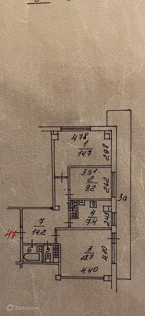 Жилая площадь 42.6 м2