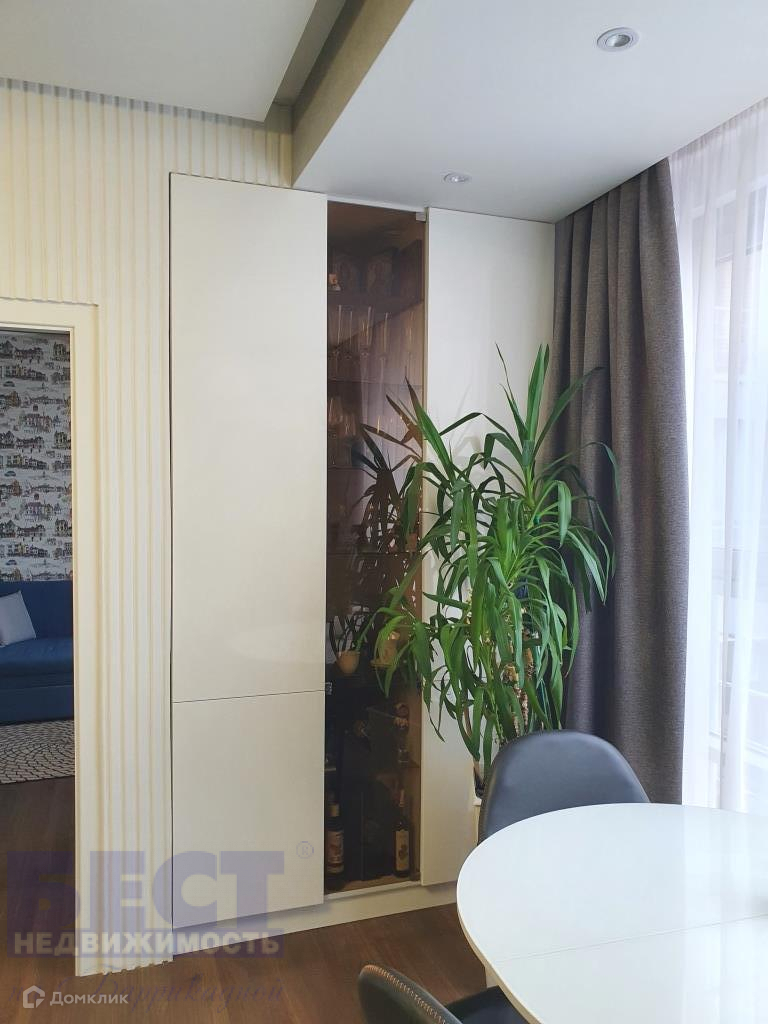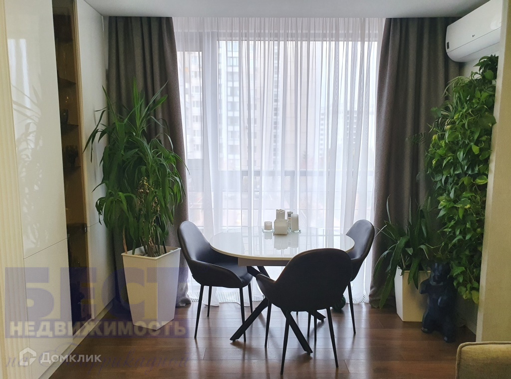 РЕМОНТ: ДИЗАЙНЕРСКИЙ стильный ремонт. Состояние отличное. Площадь квартиры 63,8 кв. м. Вид из окон: в тихий двор, на запад и красивые закаты. Планировка: две комнаты 13,9-13,2 кв. м., кухня-гостиная-столовая 23,1 кв. м. со сплит-системой LG, санузел совместный с душем и ванной (полы с подогревом), гардеробная в одной из комнат, кладовая при входе. Квартира продается с мебелью «заезжай и живи». Мебель встроенная, сделанная на заказ, в едином стиле и цветовой гамме: шкафы, кухонная мебель с техникой: духовкой, посудомоечной машиной, холодильником, отдельная зона (остров) с варочной панелью, вытяжкой. Гармонично подобраны мягкая мебель и шторы. Материал пола: высококачественный автрийский ламинат, керамогранит. Панорамное остекление. Хорошая шумоизоляция.