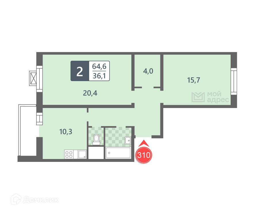 Общая площадь 64.6 м2