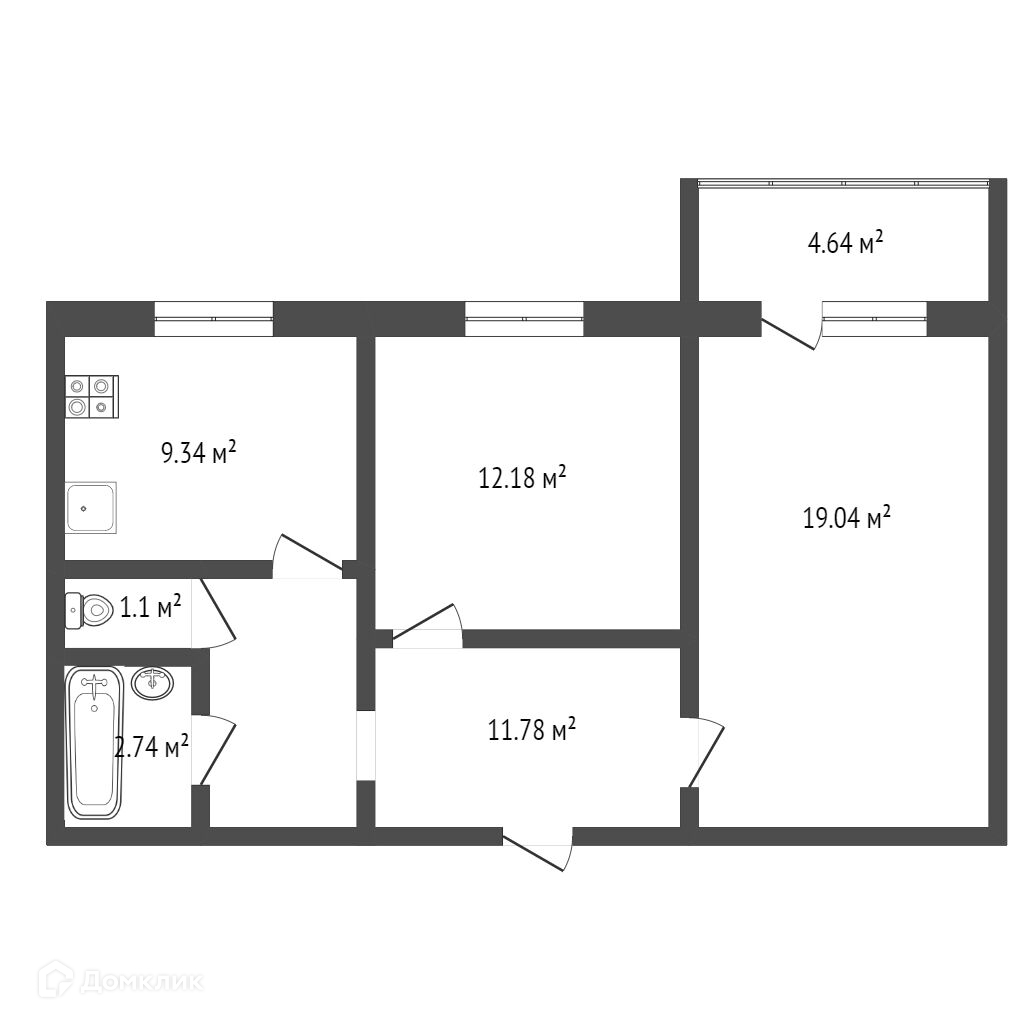 Общая площадь 53.6 м2