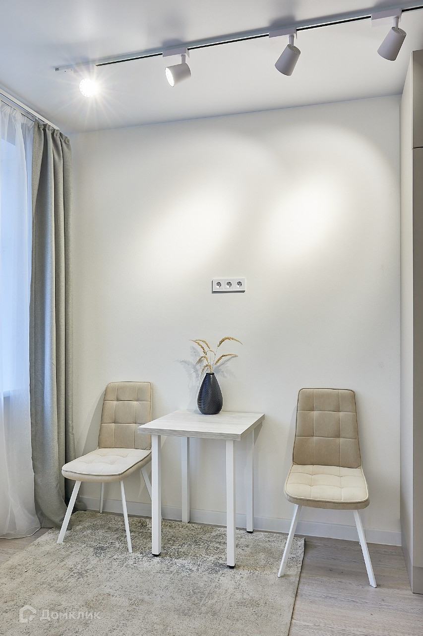 Студия с высококачественной чистовой отделкой под ключ - установлены пластиковые окна европейского производителя с двухкамерными стеклопакетами, натяжной потолок с точечным светодиодным освещением, сантехника зарубежных производителей, полностью заменены инженерные системы. В интерьере использованы нейтральные оттенки, что позволит преобразовать пространство под свой вкус.