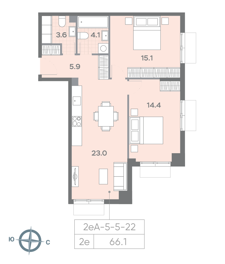 Общая площадь 66.1 м2