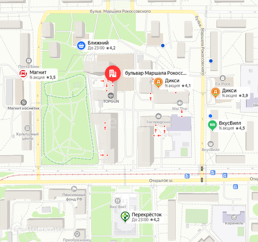 Хорошее транспортное обеспечение: ближайшие станции метро "бульвар Маршала Рокоссовского", в 8 минутах пешком!
