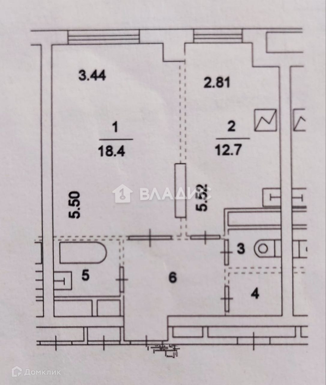 Жилая площадь 18.4 м2