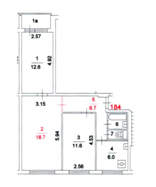 Общая площадь 58.5 м2