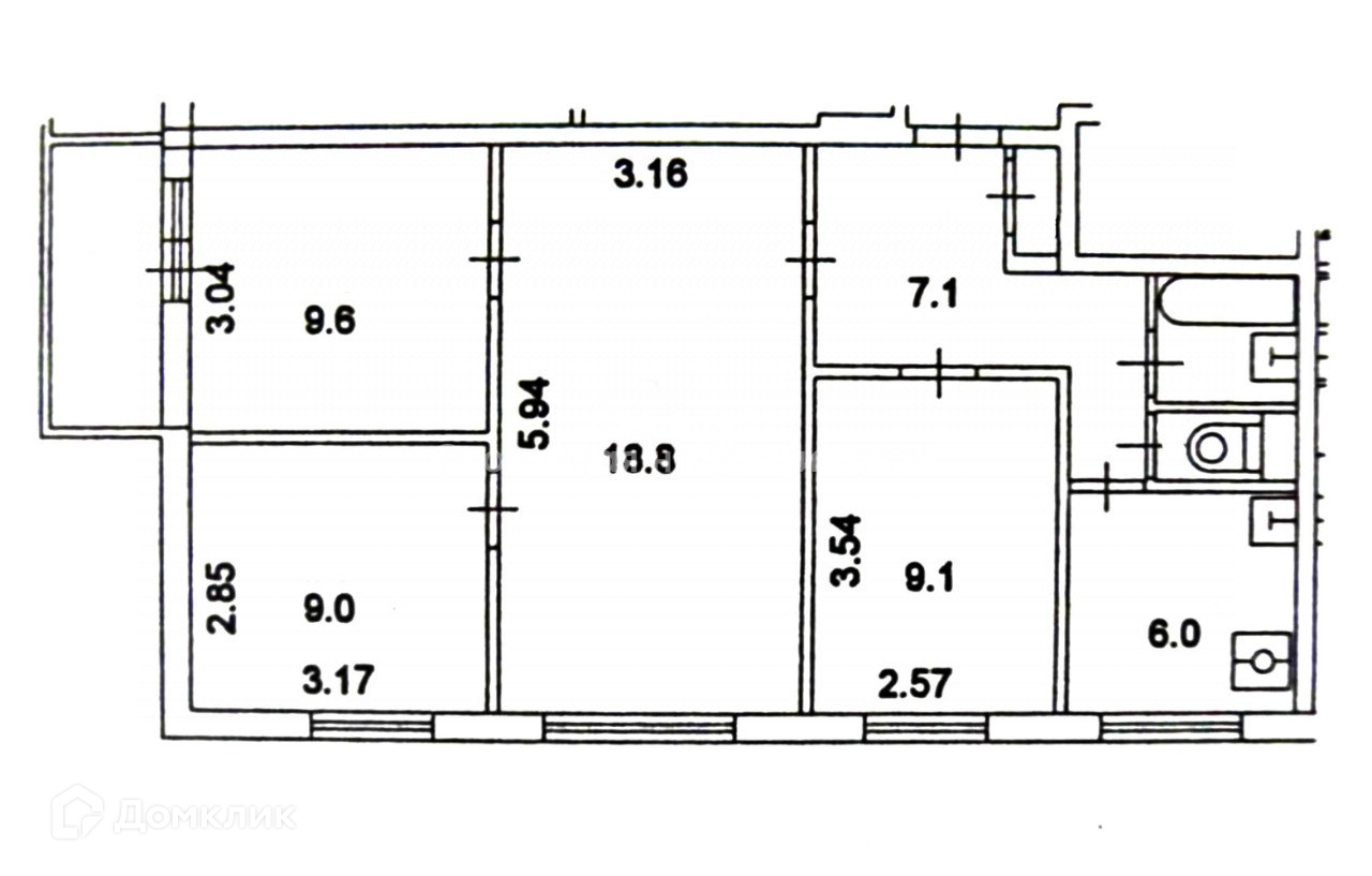 4-комнатная квартира, 62.8 м2, этаж 3 / 9, на продажу в Москве, Кустанайская улица, 9к1