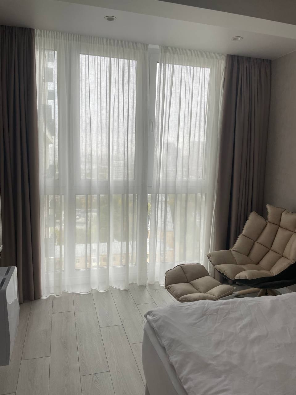 Стильный, дорогой интерьер. Квартира состоит из : кухни-гостиной , спальня - кабинет, большая спальня с зоной релакса, встроенная большая гардеробная комната оснащенная стиральной и сушильной машинами. В квартире выполнен дорогостоящий ремонт с использованием дорогих материалов , сделана шумоизоляция .