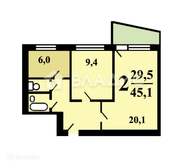 Жилая площадь 29.5 м2