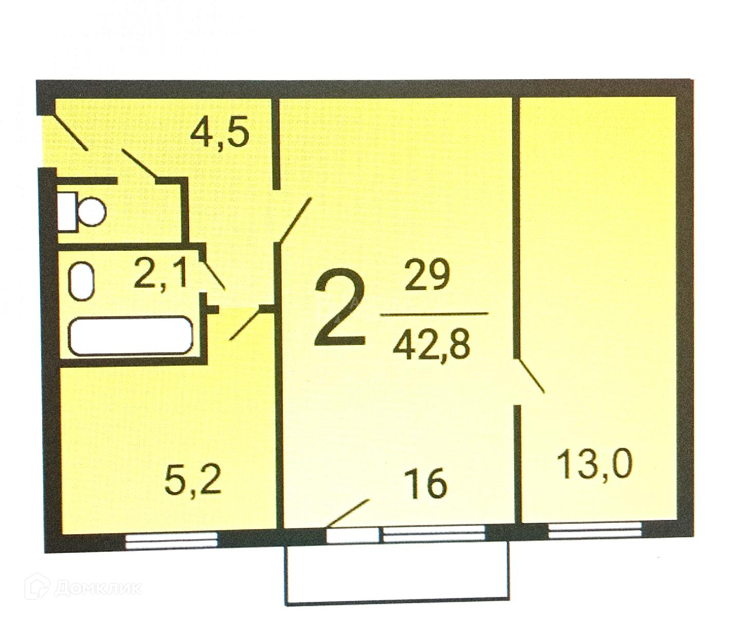 Общая площадь 42.8 м2
