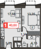 Общая площадь 40.6 м2