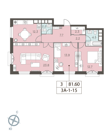 Общая площадь 81.6 м2