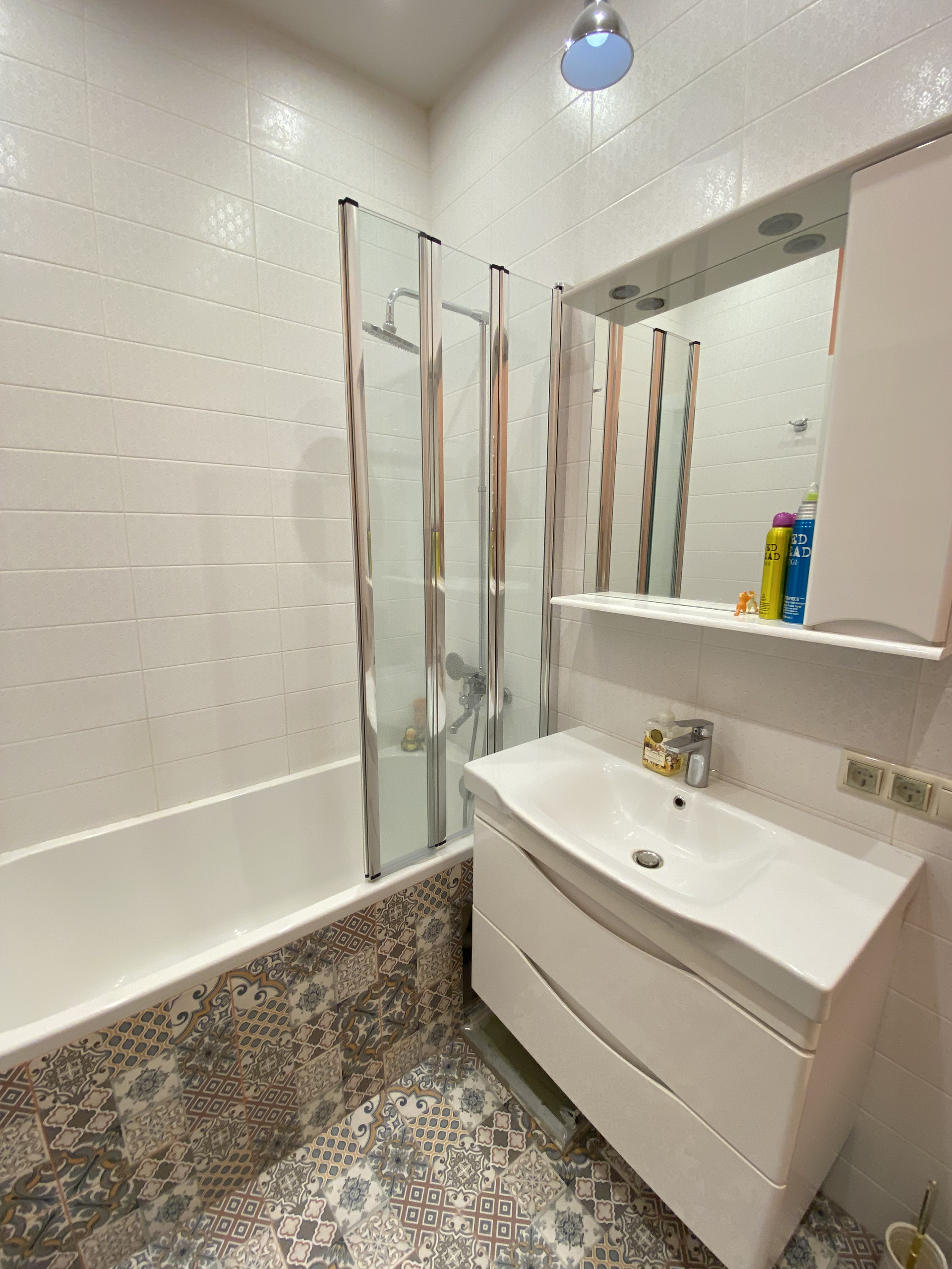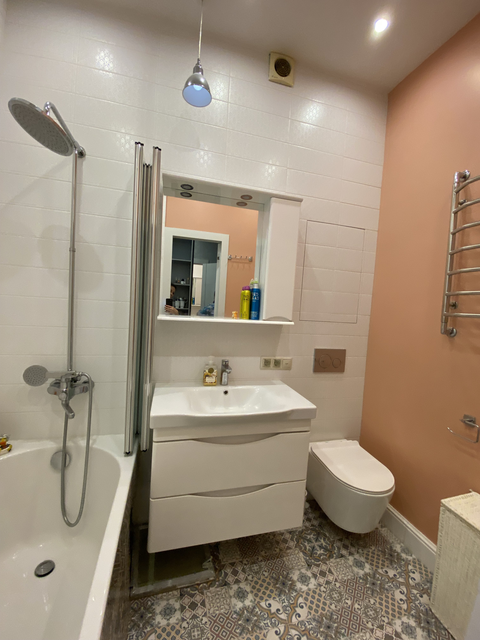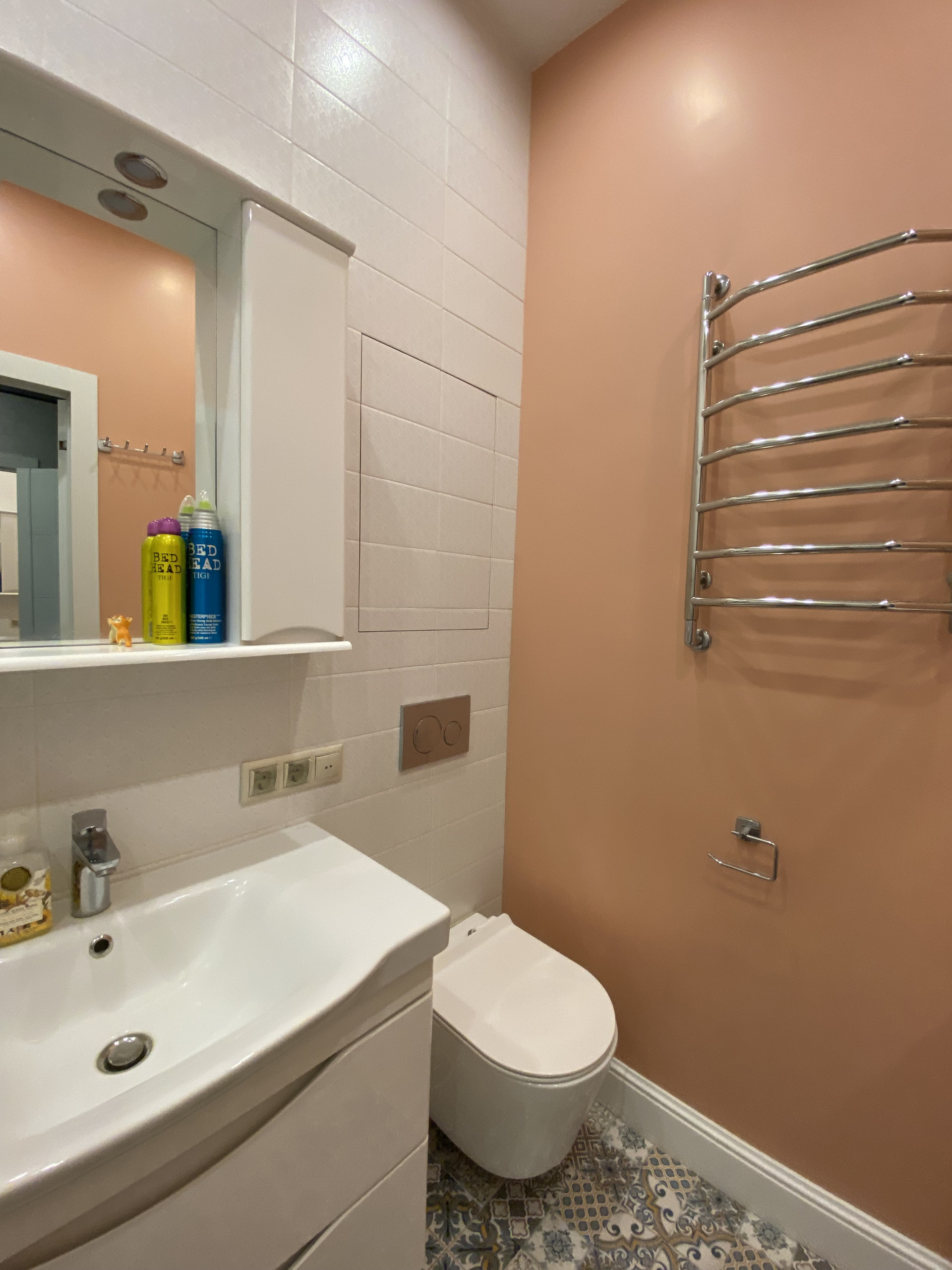 Совмещенный санузел, пол-плитка с подогревом.
