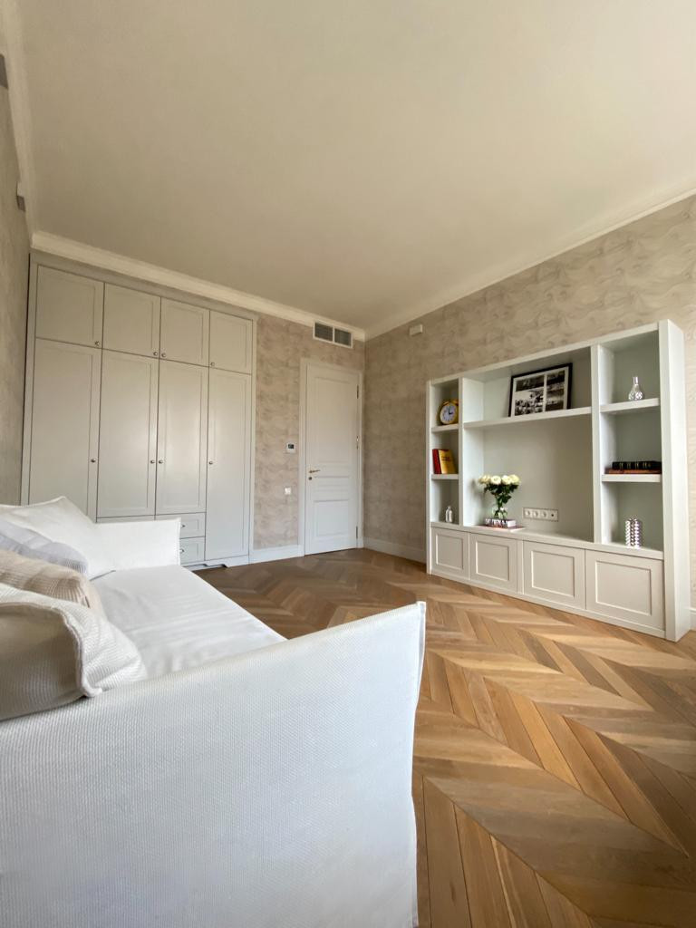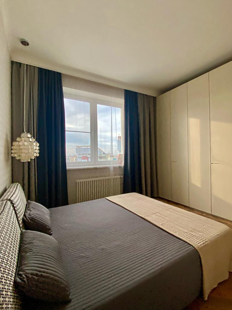 Квартира с дизайнерским ремонтом и потрясающим видом из окон. Высота потолков 3,2 м. Помещения выполнены в мягких оттенках, что позволило создать особую атмосферу уюта: просторная гостиная с примыкающей кухней, три спальни, две ванные комнаты. Кухонный гарнитур со всей необходимой бытовой техникой "Siemens" и "Miele". Встроенное кондиционирование - сплит - система "Mitsubishi". Две роскошные ванные комнаты с сантехникой "Villeroy &Boch" и "Hansgrohe".