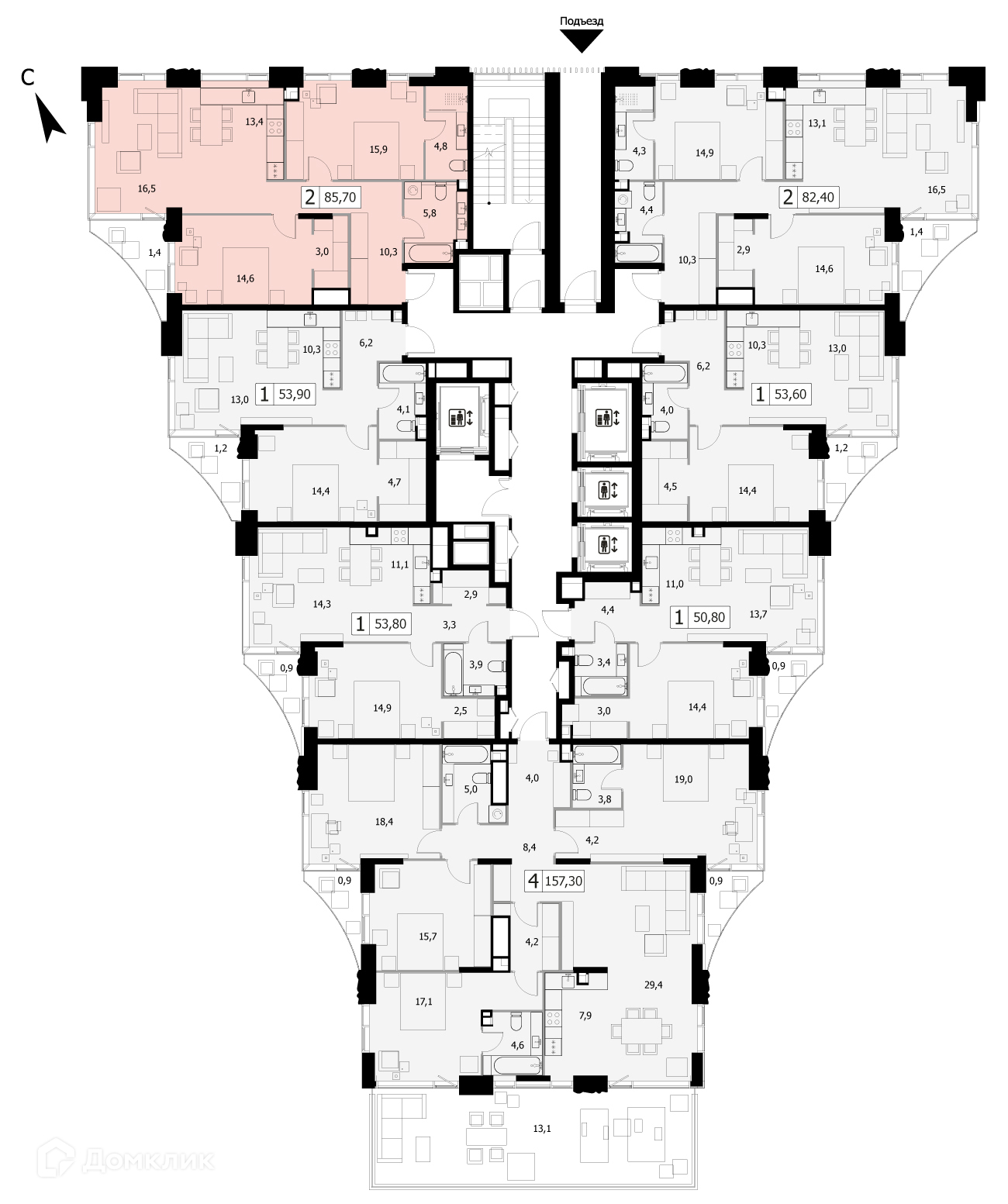 Общая площадь 85.7 м2