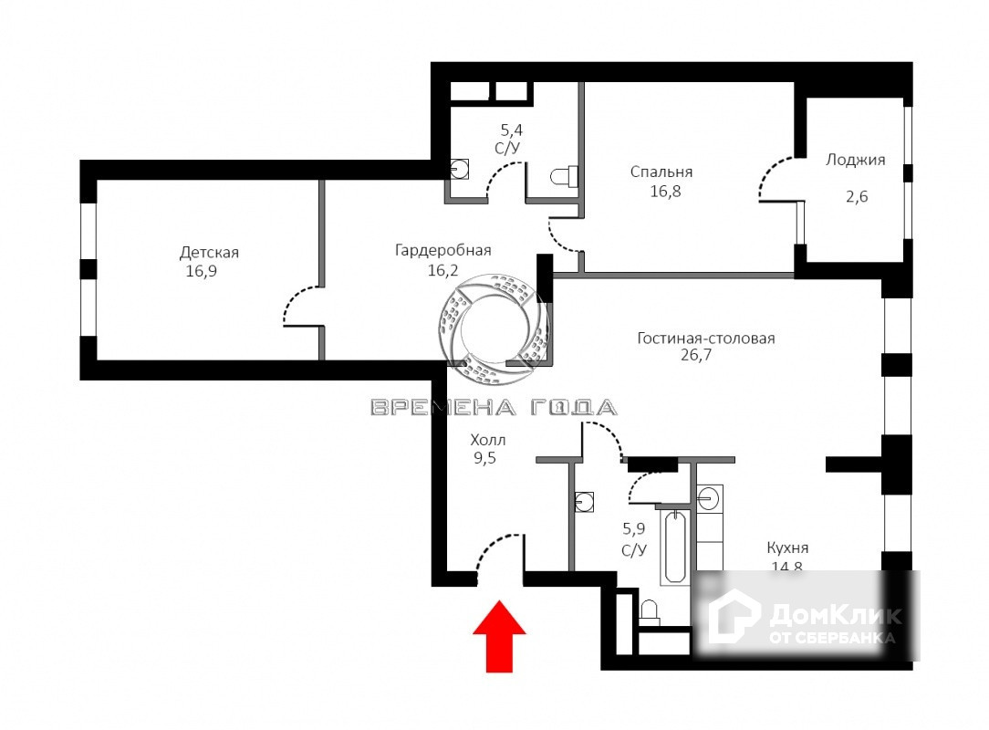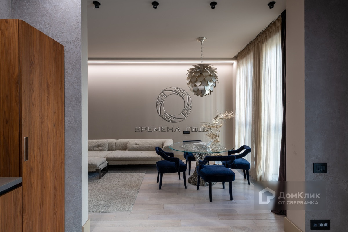 Планировочное решение: кухня-гостиная, две спальни, большая гардеробная между комнатами, два санузла.