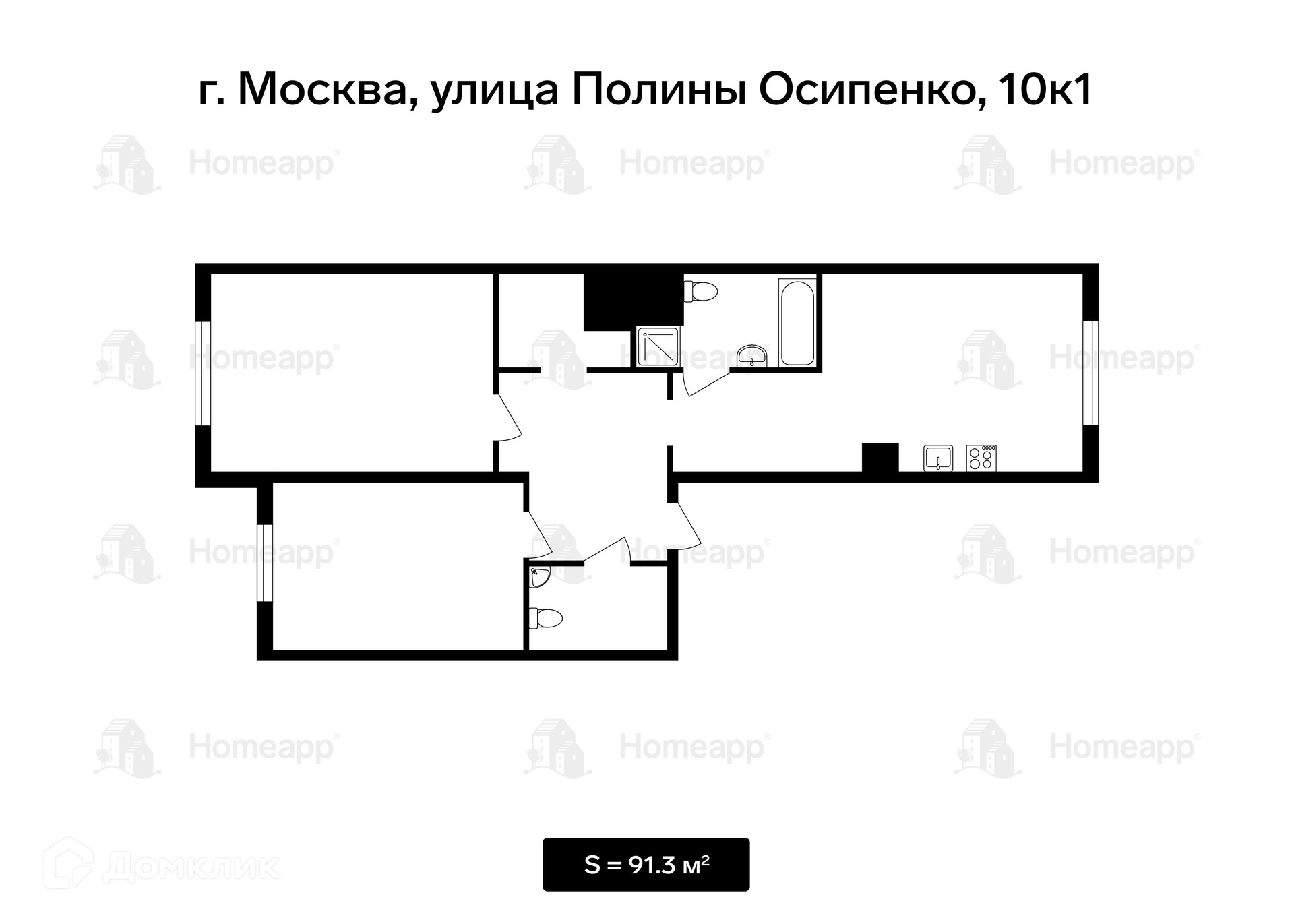 Общая площадь 91.3 м2