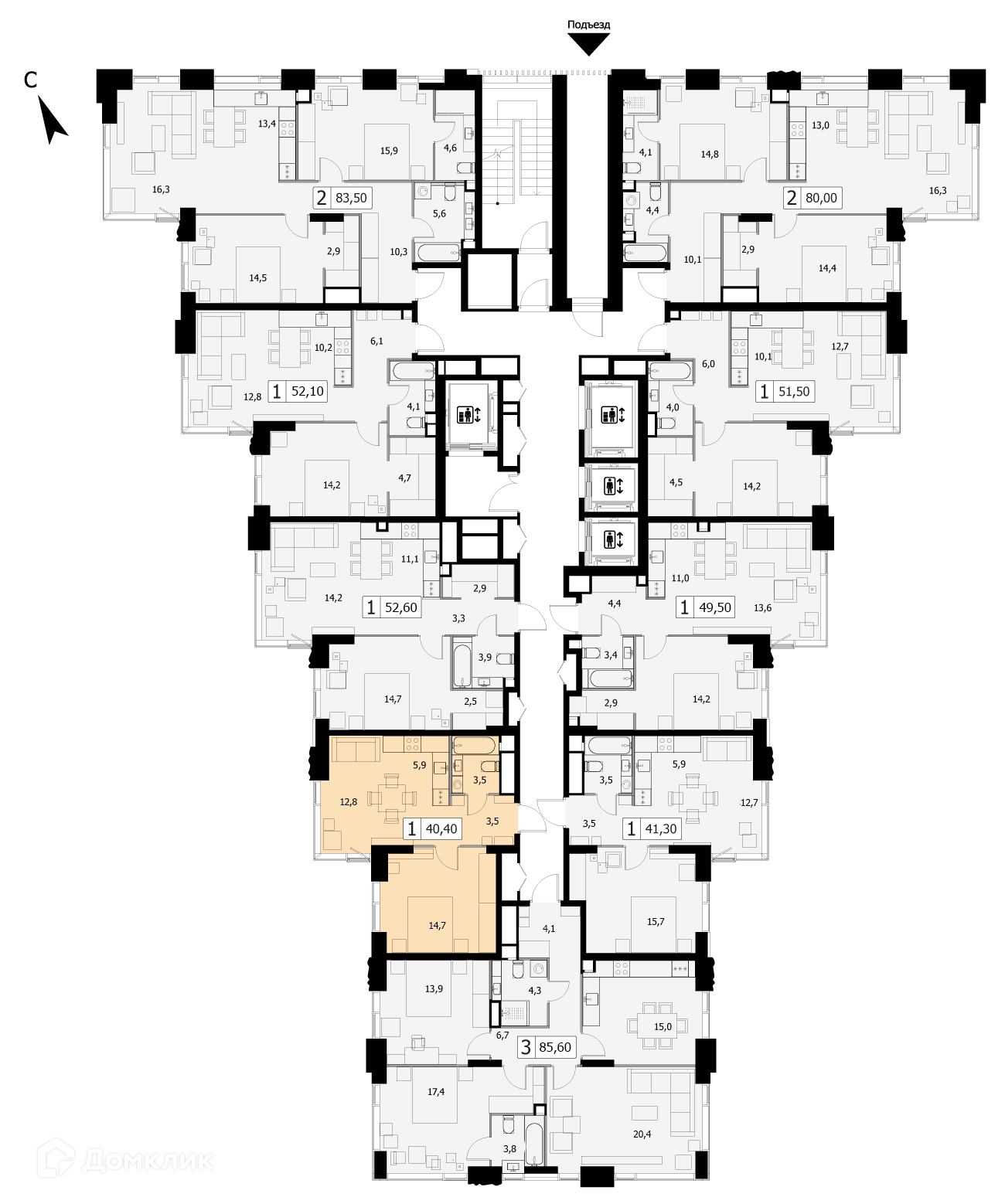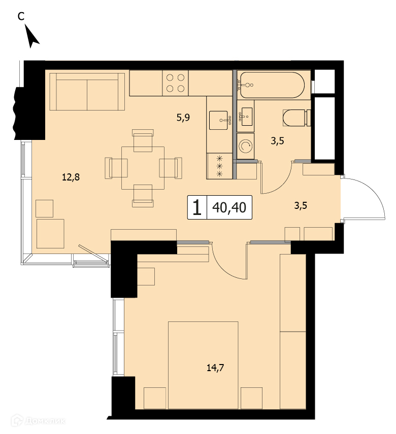 Общая площадь 40.4 м2