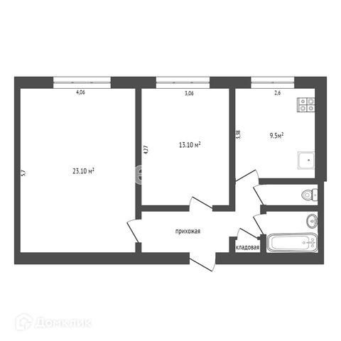 Общая площадь 56.1 м2