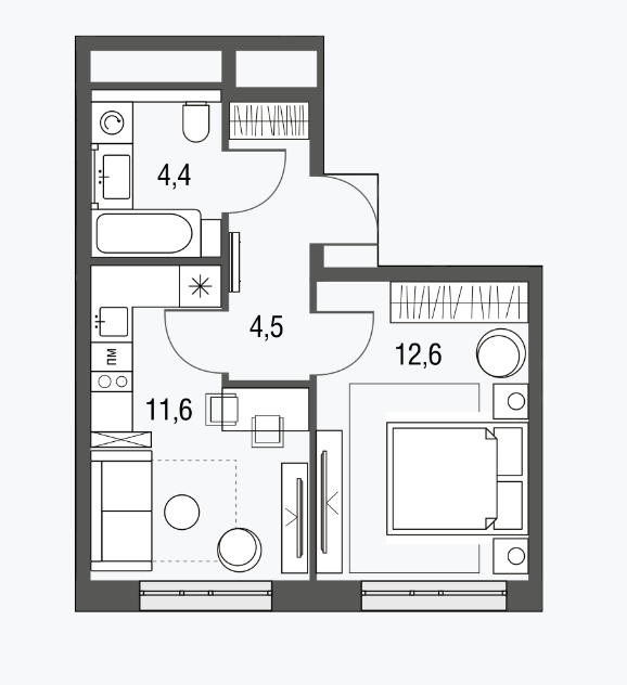 Общая площадь 33 м2