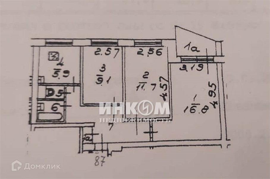 3-комнатная квартира, 59.1 м2, этаж 4 / 9, на продажу в Москве, улица Мусоргского, 1