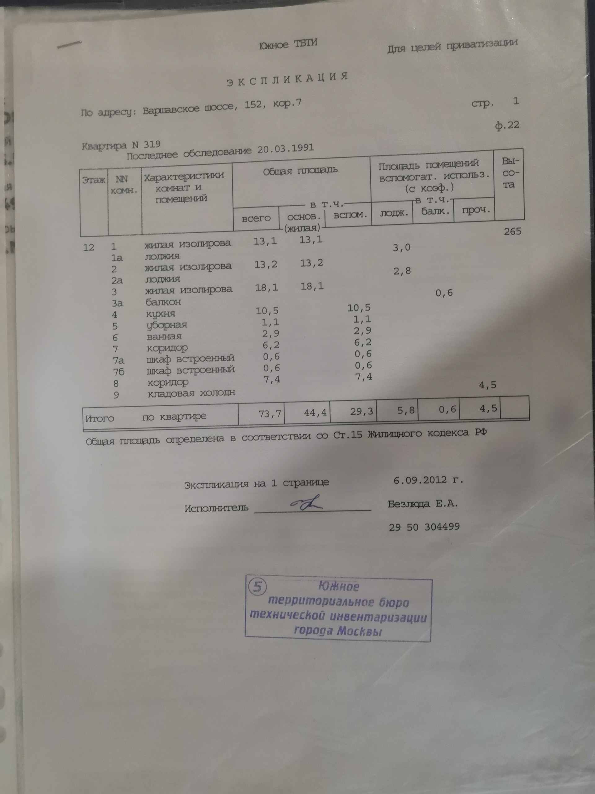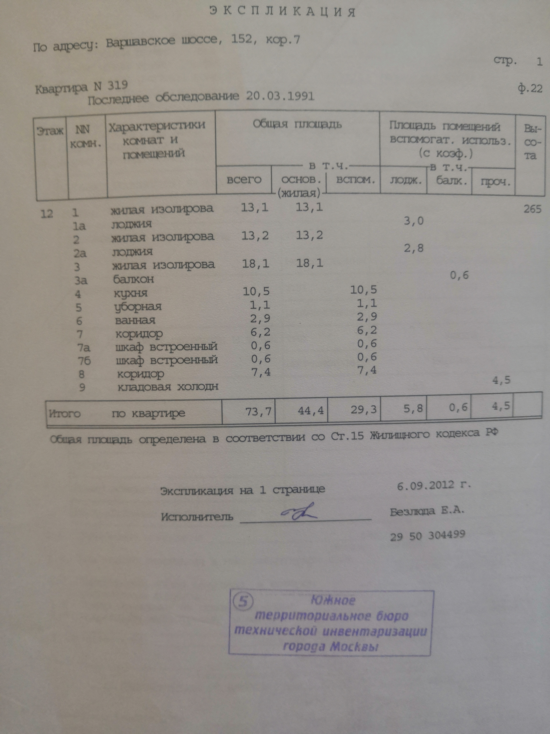 Общая площадь 73.7 м2