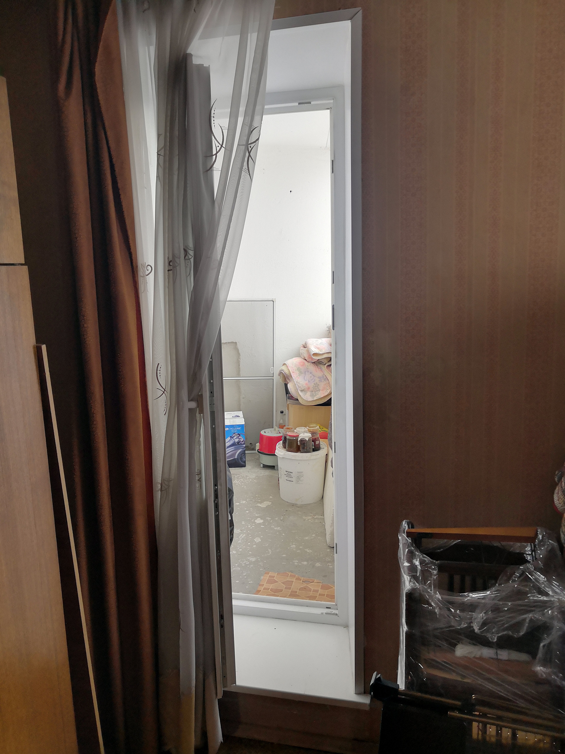2  лоджии застеклены (в одной лоджии есть комната, которая не связанна с другими остальными тремя комнатами),  и 1 открытый балкон.
