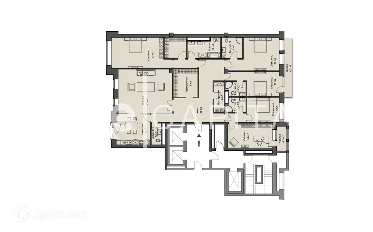 Жилая площадь 266.4 м2