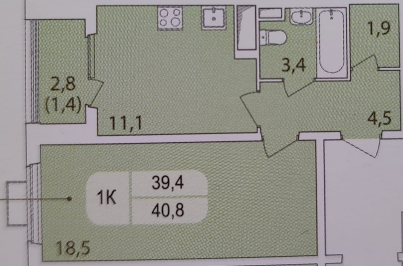 Общая площадь 40.8 м2