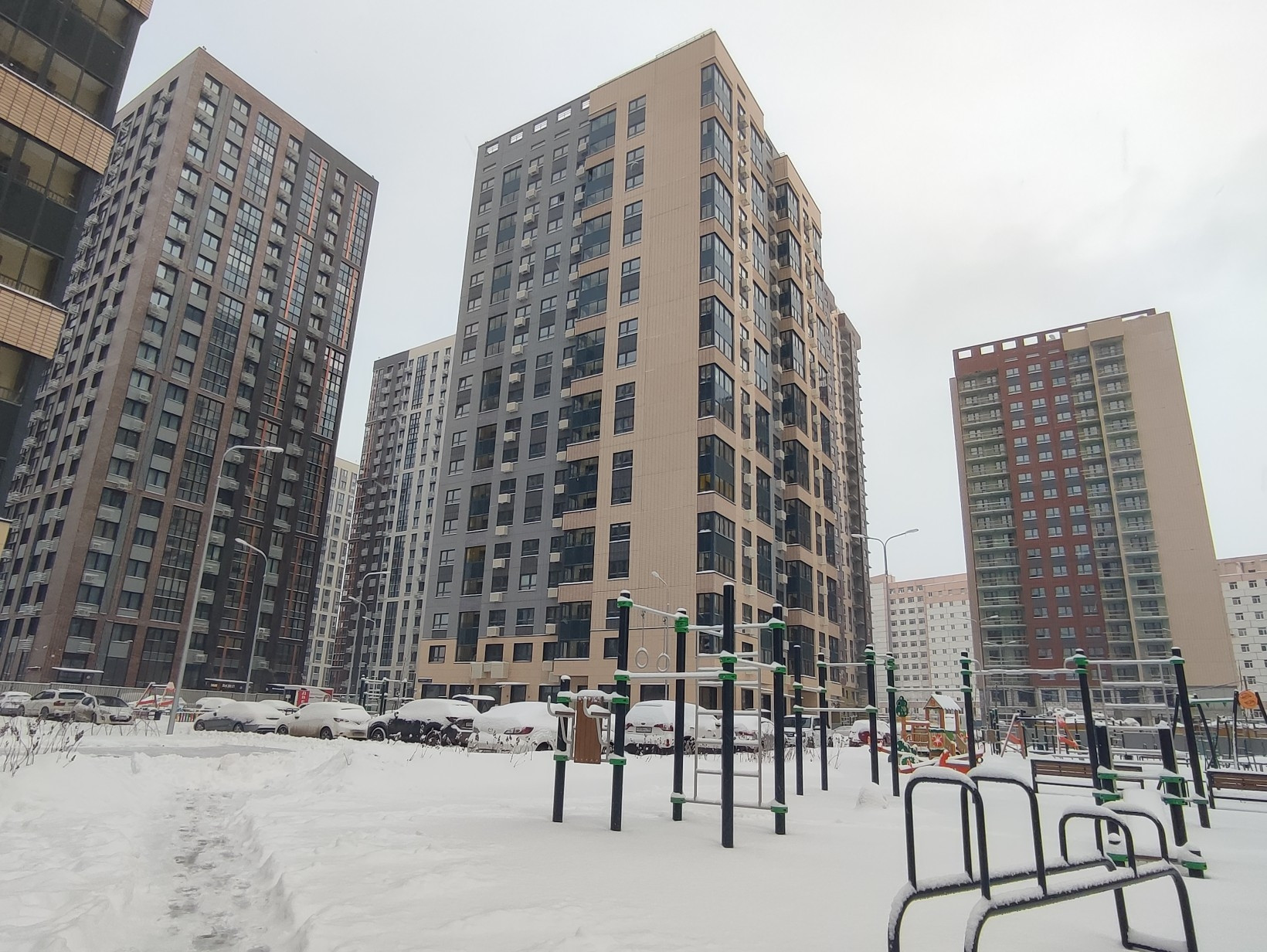 На территории комплекса расположены детские площадки, коммерческая инфраструктура (кафе, магазины), плюс по индивидуальному проекту предусмотрено строительство учебного комплекса, включающего школу и детский сад.
