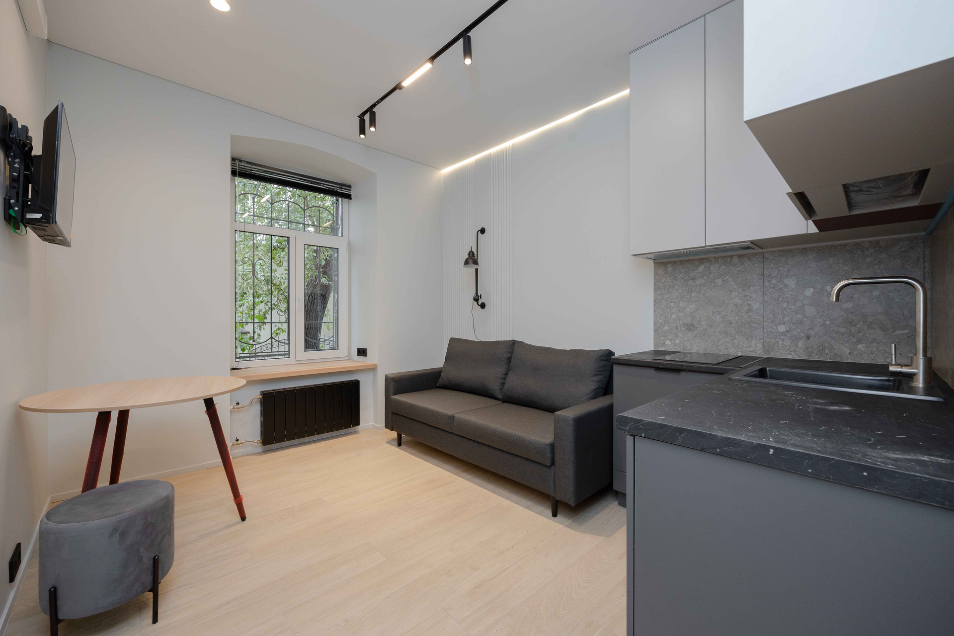 Дизайнерские студии с отделкой и мебелью в историческом здании в стиле лофт. Из окон открываются красивые виды на старинные особняки, парковые зоны и высотку на Котельнической набережной.
