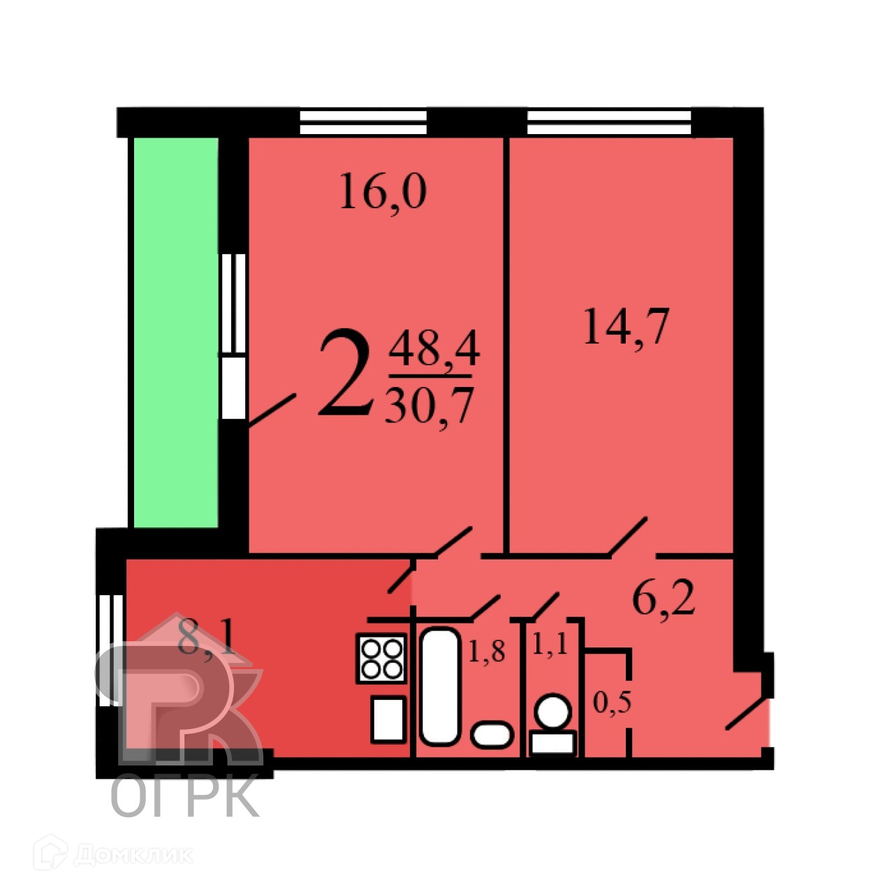 Общая площадь 49 м2