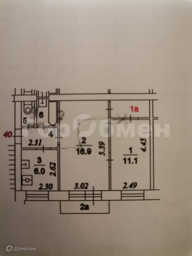 Общая площадь 43.3 м2